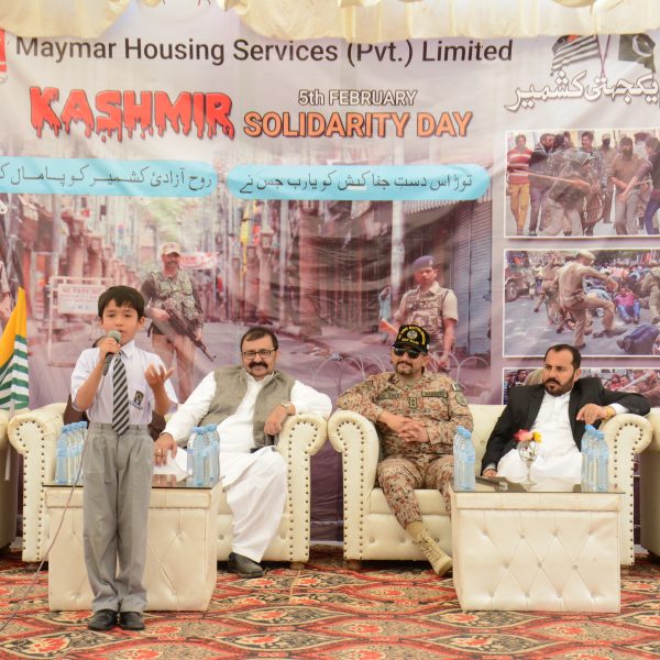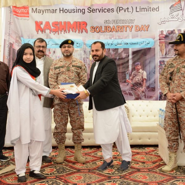 5th February 2020 Maymar Housing Service – Pvt Ltd. observed Kashmir day with great zeal. Employees led by the chairman, residents of Gulshan-e-Maymar and officials of Pakistan Rangers (Bhittai Wing) joined together for a walk followed by a debate competition between the students of various schools to show their support for the people of Kashmir.
